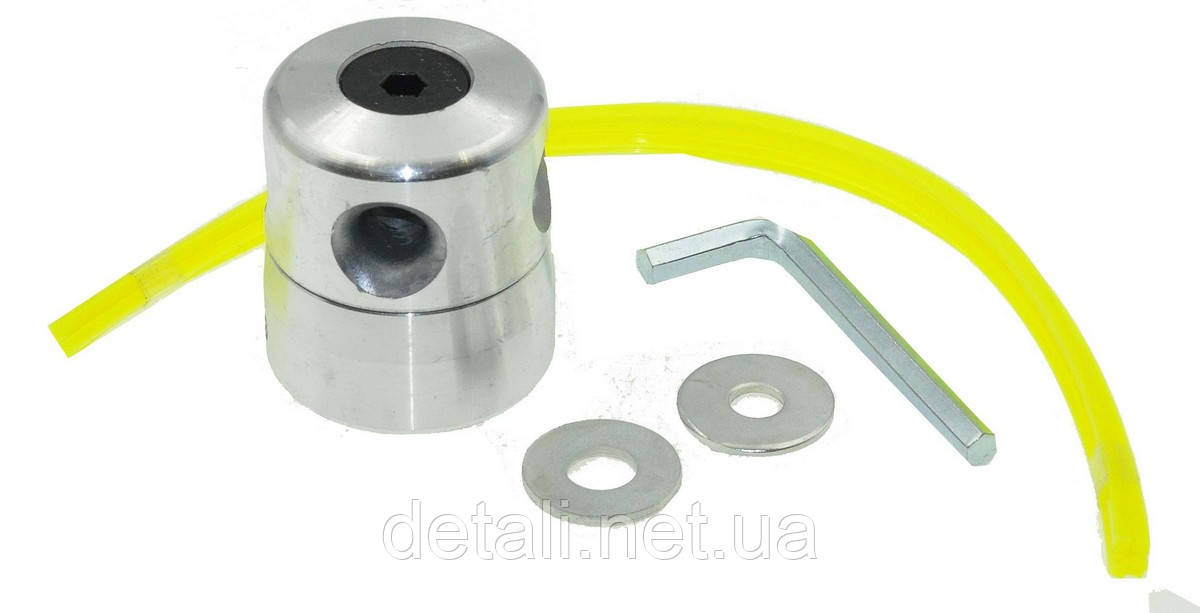 мера алюмінієва на блістері (d16*44/h52 мм). Внутрішній діаметр: 16 мм. Зовнішній діаметр: 44 мм. Висота: 52 мм.Універсальна металева шпуля для мотокос та електричних тримерів з верхнім розташуванням двигуна, встановлюється замість ножа. Діаметр ліски до 4мм. Постачається у блістері.